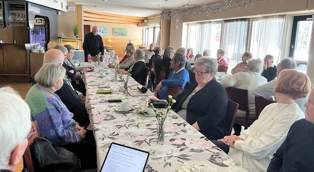 Puheenjohtaja Pekka Raitala avasi kuukausitapahtuman ja toivotti yhdistyksen jäsenet ja vierailijat tervetulleiksi. Koolla oli jälleen runsaslukuinen, iloinen joukko seniorijäseniä ja muita hartolalaisia, yhteensä 55 henkilöä