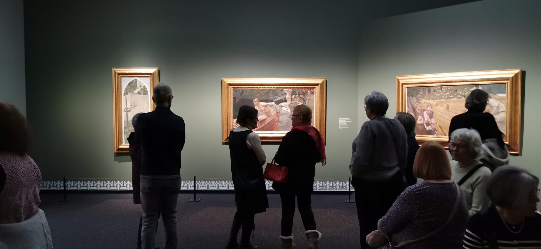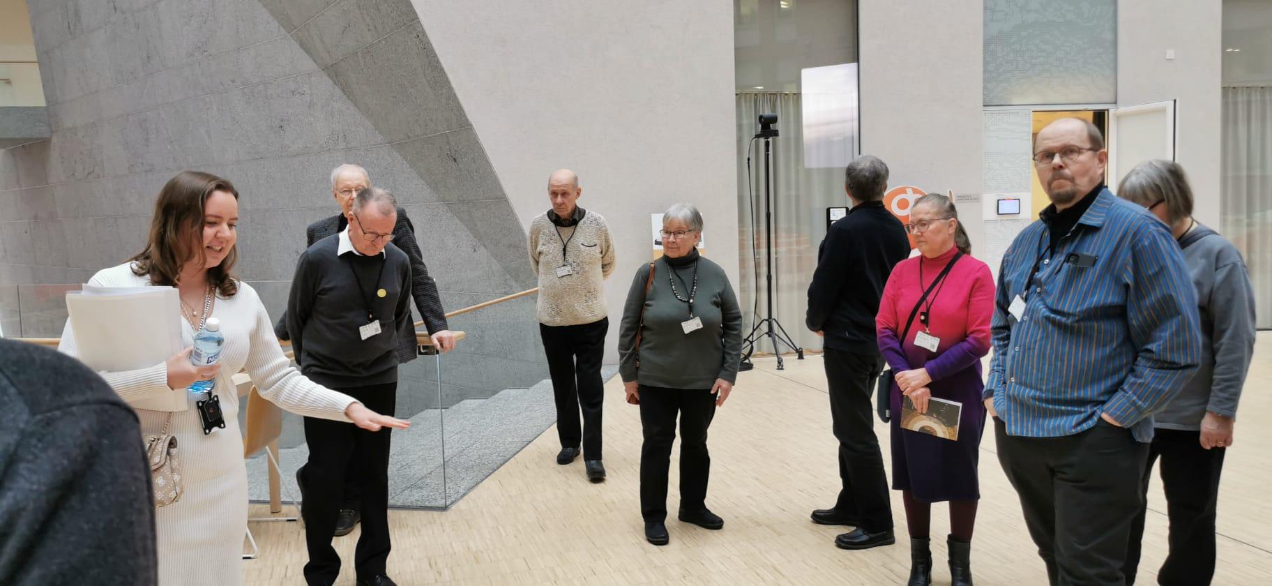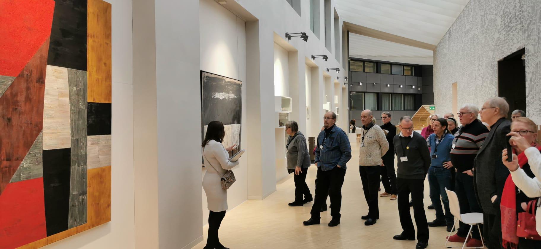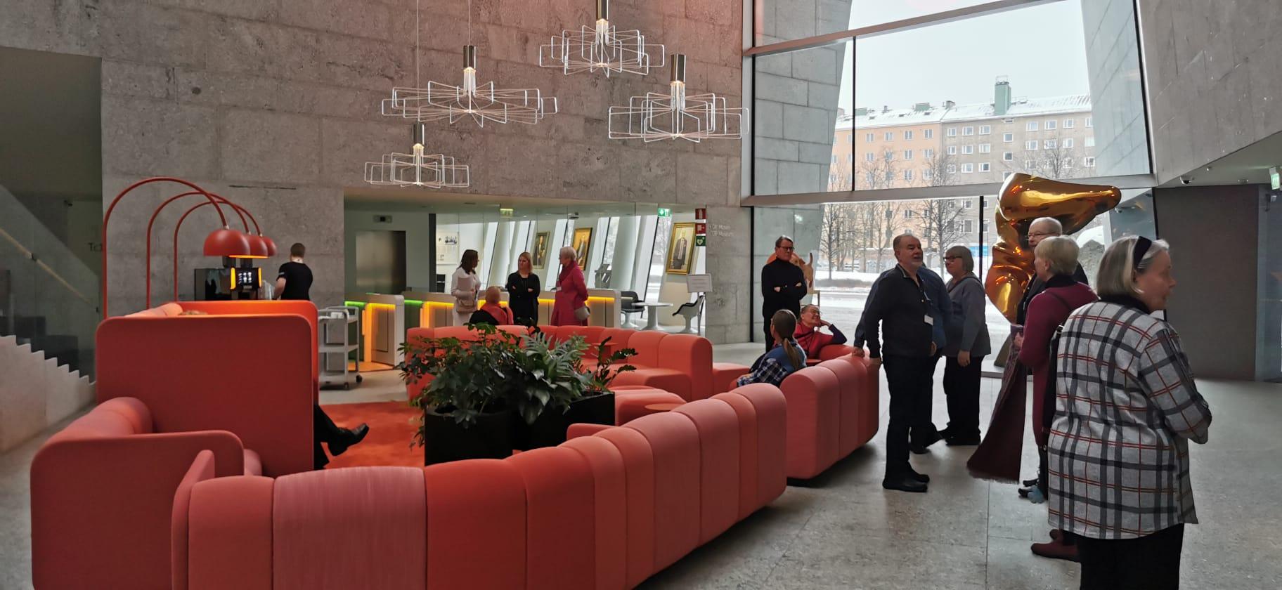 Seniorien Helsingin taideretkellä 23.1.2026 oli mukana 21 senioria. Reissussa oltiin Haarasillan isolla bussilla ja matka sujui oikein mukavasti molempiin suuntiin. Aamupäivällä vierailtiin Ateneumissa Gallen-Kallela, Glimt ja Wien -näyttelyssä, johon saimme ensin loistavan intron museon henkilökunnalta. Intron jälkeen kiertelimme näyttelyn ja tutustuimme taideteoksiin tarkemmin. Sesessionistinen taidesuuntaus tuli tutuksi. Ateneumista siirryttiin bussilla Vallilaan ja OP Pohjolan pääkonttoriin, jossa meidät otettiin vastaan ja annettiin vierailijakortit kaulaan. Lounastimme OP Pohjolan ravintolassa, jonka jälkeen lähdimme oppaan johdolla kierrokselle Op Pohjolan toimitiloihin ja tutustuimme Op Ryhmän Taidesäätiön teoksiin. Lopuksi tutustuimme vielä Op Museoon, jossa esillä oli rahan ja pankkitoiminnan historiaa. Kiitos kaikille mukana olleille ja järjestelyistä vastanneille!